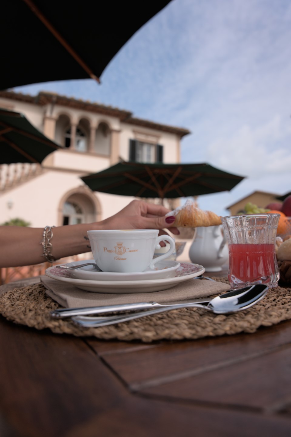 Oben angekommen wartet Michaela, die Gastgeberin von Poggio al Casone. Sie ist schon seit 2007 hier, also ein Jahr, bevor das Resort offiziell seine Türen für Besucher öffnete, und kennt nicht nur alle Geheimnisse des Weingutes, sondern auch die der Umgebung wie ihre Westentasche.