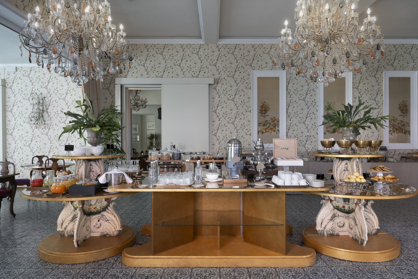 Schon der Frühstücksraum lässt manchen Mund vor Entzücken offenstehen. Im Belle Époque Saal hängen prunkvolle Kronleuchter, die Wände sind kunstvoll tapeziert und mit Stuck verziert, die Stühle mit edlen Samtstoffen bezogen.
