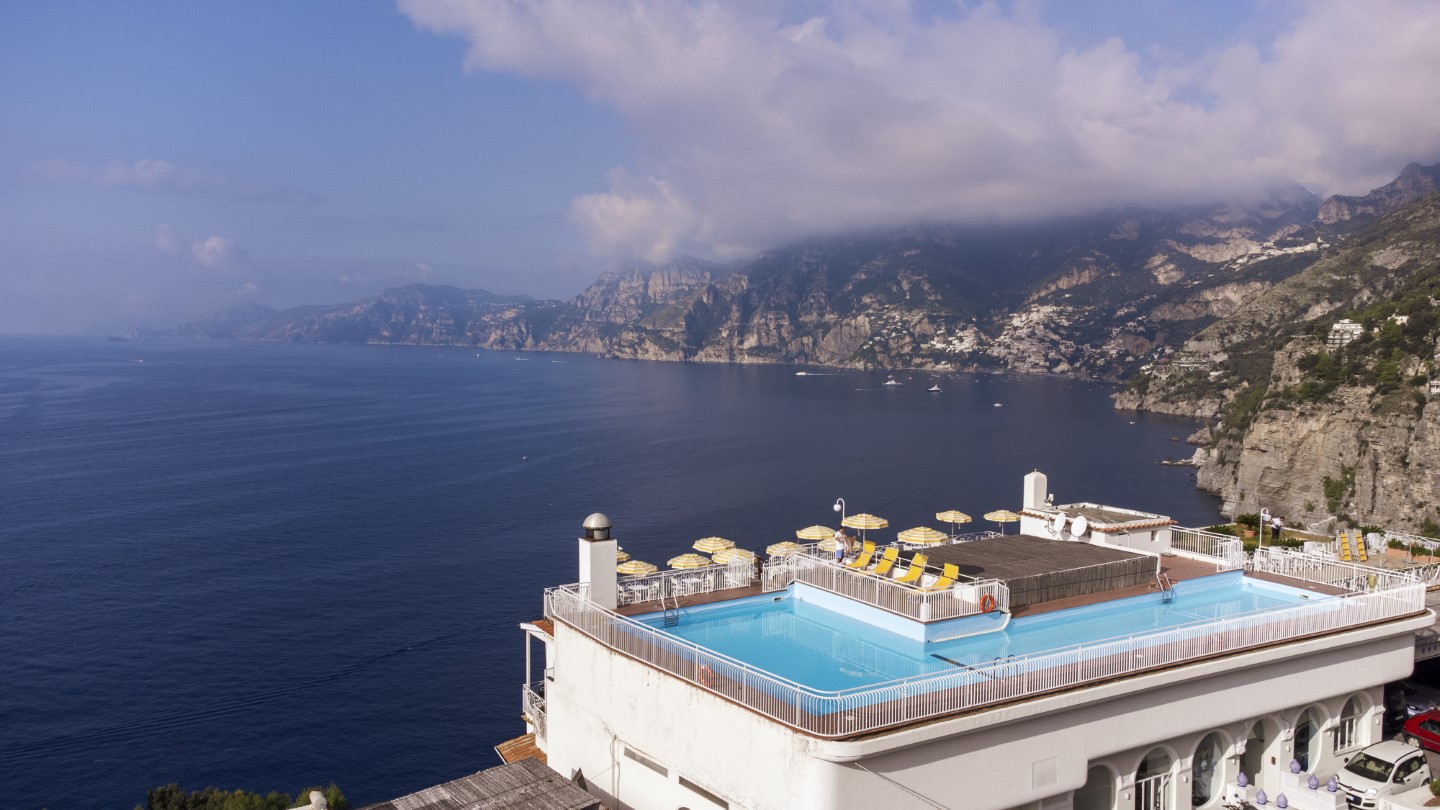 Die Familie Esposito ist schon immer ganz vorne dabei – das gilt auch für den Panorama-Pool, einer der größten an der Amalfiküste. Auf der Dachterrasse im Rooftop-Café werden kleine Mittagsgerichte und Snacks angeboten, der Aperitif hier oben ist einmalig und schon allein ein Grund herzukommen.
