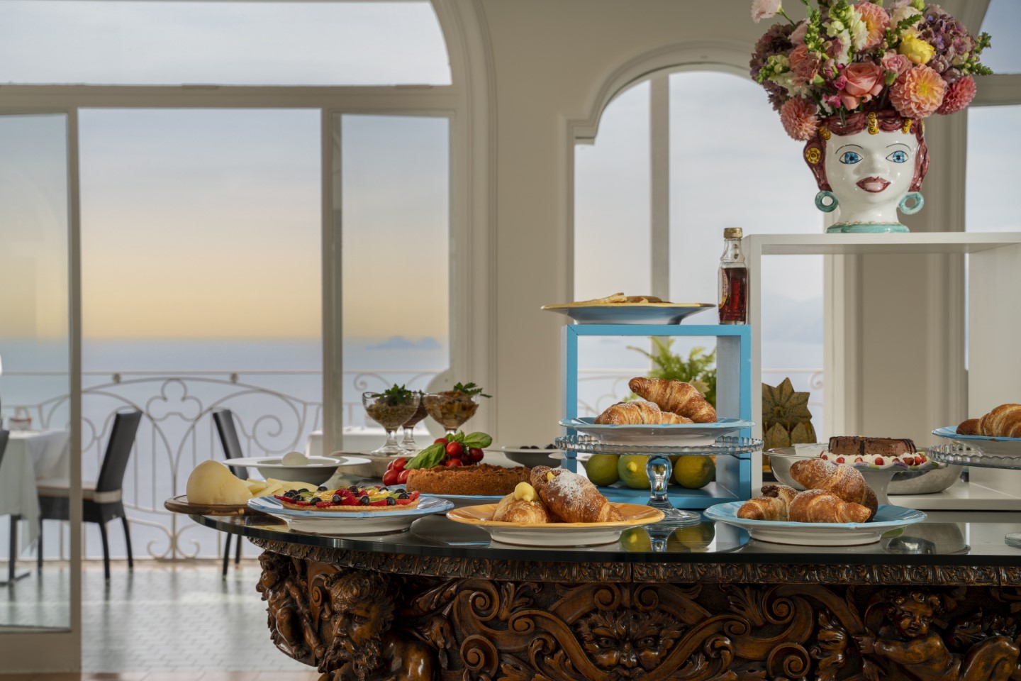 Jeder Tag an der Amalfiküste ist einzigartig, doch alle beginnen sie mit Kaffeeduft und Meeresrauschen. Die Morgensonne kitzelt, Positano und Capri erscheinen in der Ferne, während greifbar nah das reichhaltige Frühstücksbuffet lockt.