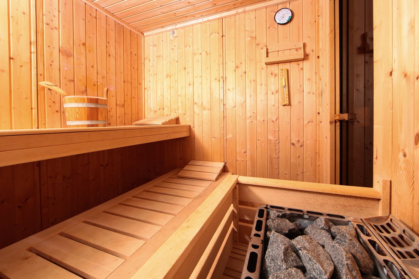 Wer von der spanischen Wärme nicht genug bekommen kann, bucht eine private Session in der Sauna des Anwesens, auch ein Massageraum steht zur Verfügung.
