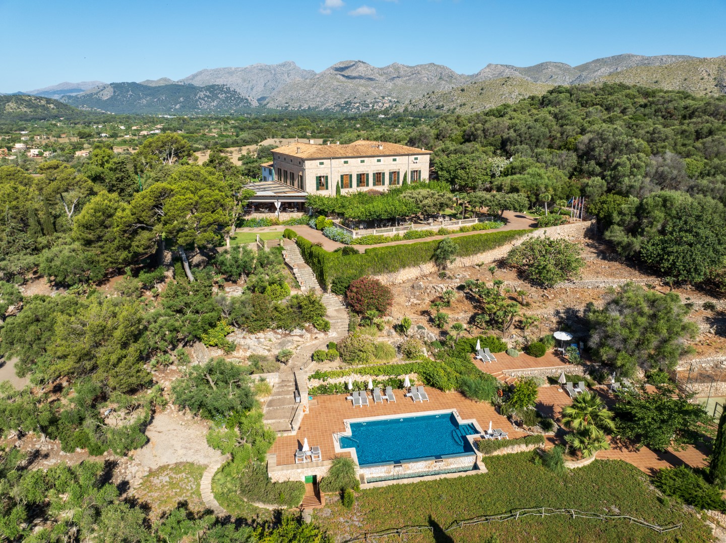 Bei der Ankunft wartet ein Glas prickelnder Cava, der spanische Schaumwein, auf die Anreisenden. Exklusiv ist es hier oben, gleichzeitig nahbar, familiär und wunderbar ruhig. Ab und zu blökt ein Schaf, der Blick vom Pool aus geht über das riesige Grundstück: man sieht Port de Pollença, Cap Formentor und auf der anderen Seite Alcúdia.