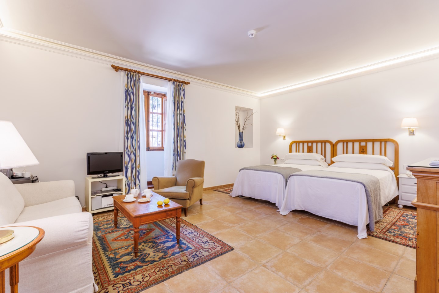 In verschiedenen Bereichen des Herrenhauses befinden sich drei Classic Doppelzimmer, fünf Juniorsuiten, drei Juniorsuiten mit Meerblick und die traumhafte Ecksuite Llenaire mit Blick auf die Gärten.