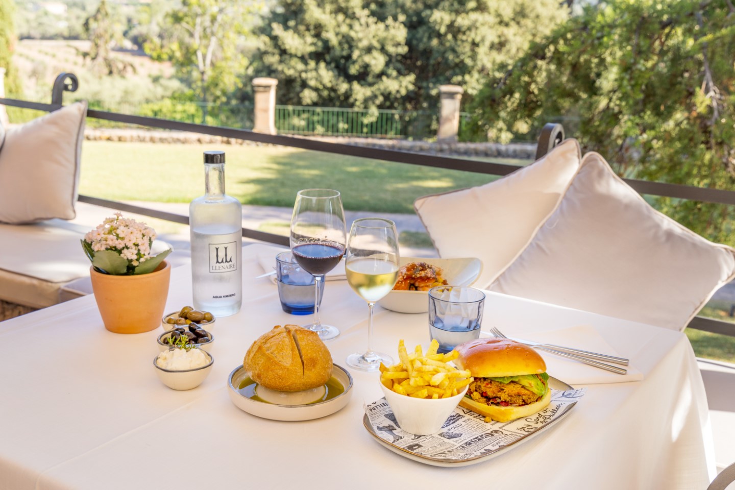 Küchenchefin María del Mar bringt auch zum Abendessen weiterhin lokale und regionale Zutaten auf die Teller. Besonders stolz ist die Finca auf die eigene Fleischproduktion, 250 Schafe grasen dekorativ auf den Hügeln um das Herrenhaus. Gemüse, Olivenöl, Mandeln, Kräuter und Zitrusfrüchte: die Produkte der Finca bringen das Aroma der südlichen Sonne mit.
