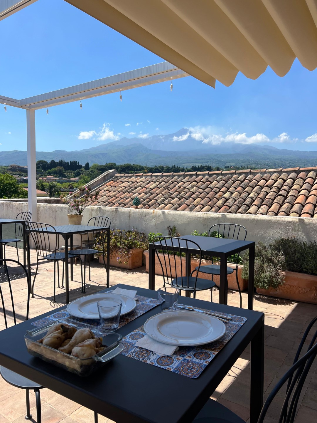 Beim Frühstück mit Blick auf den Vulkan kommt die beste Seite der Insel Sizilien zum Ausdruck: selbstgemachte süße Spezialitäten, frisches Obst, hausgemachte Marmelade, Avocados aus dem eigenen Garten und Olivenöl aus der Region lassen einem das Wasser im Munde zusammenlaufen.