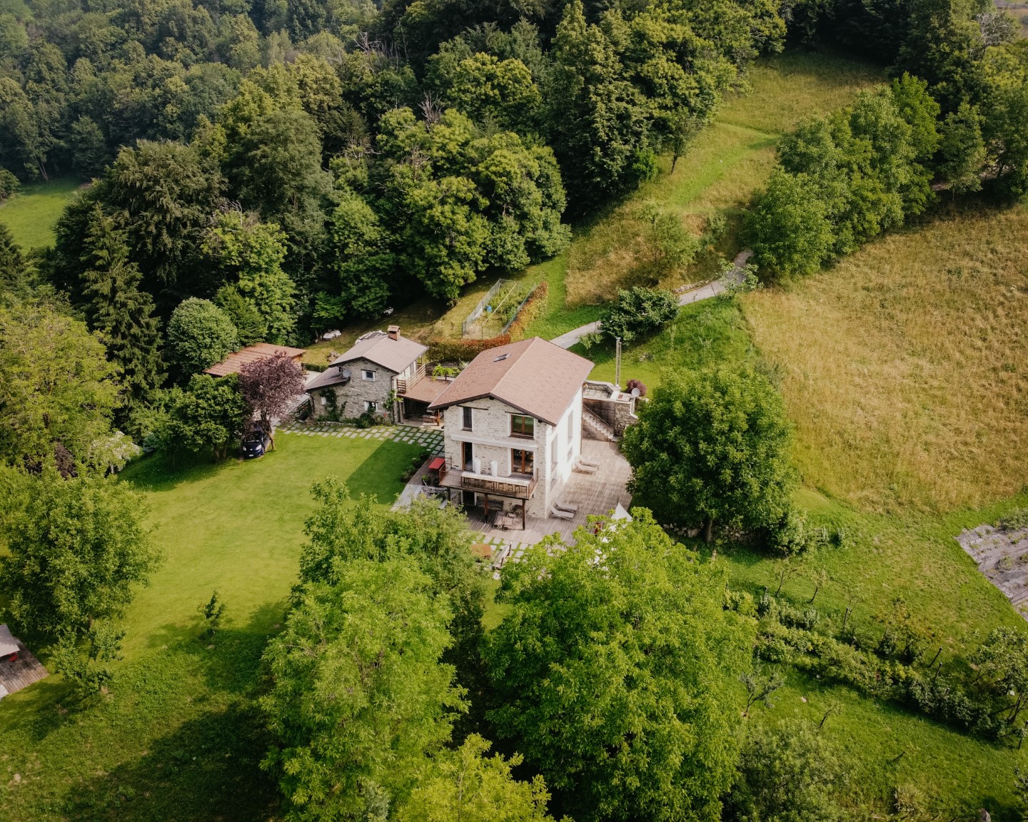 So können mühelos zwei oder drei Tage verfliegen, ohne sich je zu langweilen – versteckt im Häuschen inmitten der Natur kann man die Zeit vergessen. Wer dann wieder voller Energie ist und die Welt entdecken möchte, kommt innerhalb von einer Autostunde nach Mailand, ist in 15 Minuten am Comer See und in 50 Minuten in Bergamo.