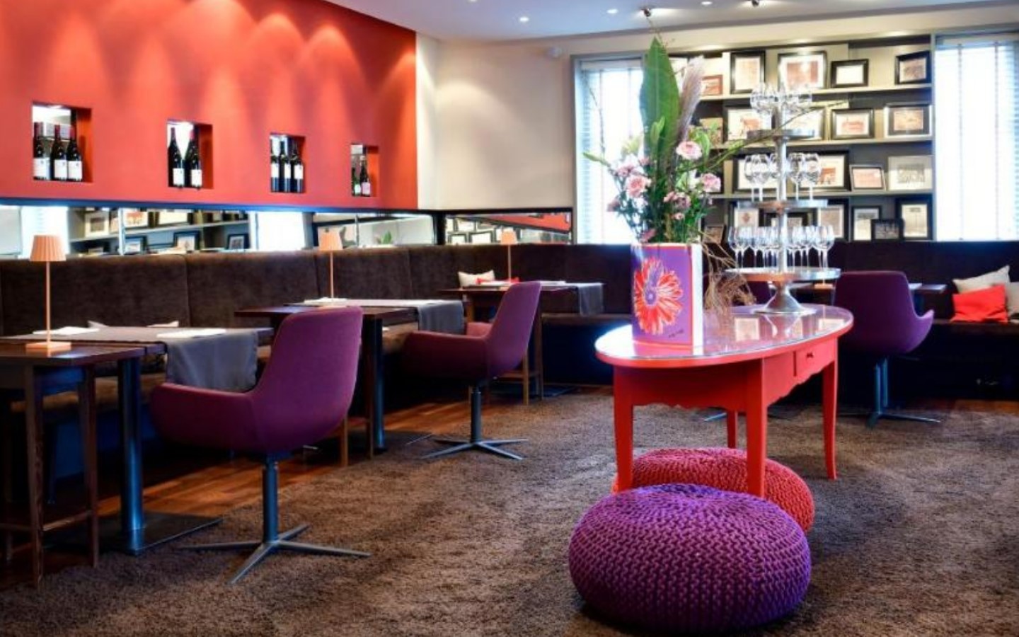 Die Räume sind liebevoll in warmen Farben wie Grün, Orange, Rottönen und Aubergine gestaltet, ergänzt durch interessante Eyecatcher, die den Räumen ihre ganz eigene Persönlichkeit verleihen. Insgesamt strahlt das ganze Haus eine behagliche Atmosphäre aus – im Winter knistert ein Feuer im Kamin in der Lobby, und frische Blumenarrangements sorgen für gute Laune.