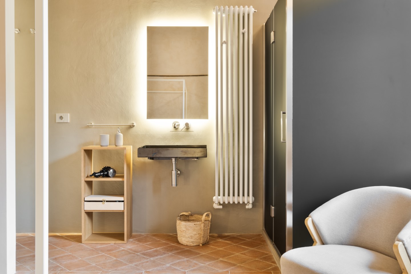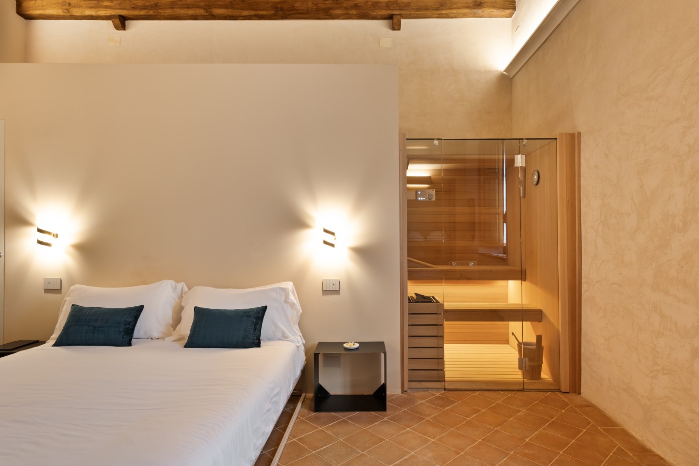 Moderne Badezimmer wurden direkt in die Schlafräume integriert und verleihen Leichtigkeit und kontemporäre Stimmung. Zwei der Zimmer verfügen über eine eigene Sauna und über ein Dampfbad. Absichtlich wurde auf Fernseher verzichtet, jedes Zimmer hat ein eigenes Tablet.