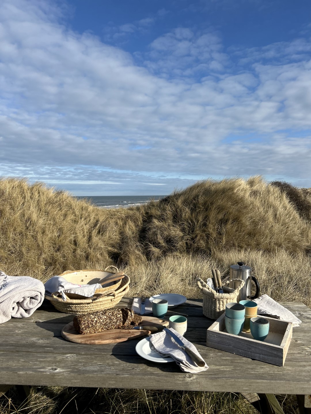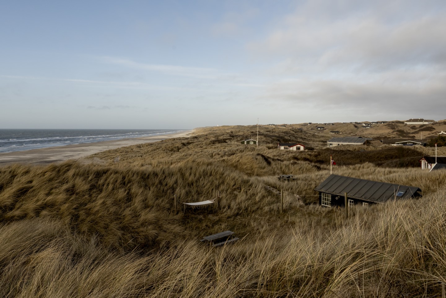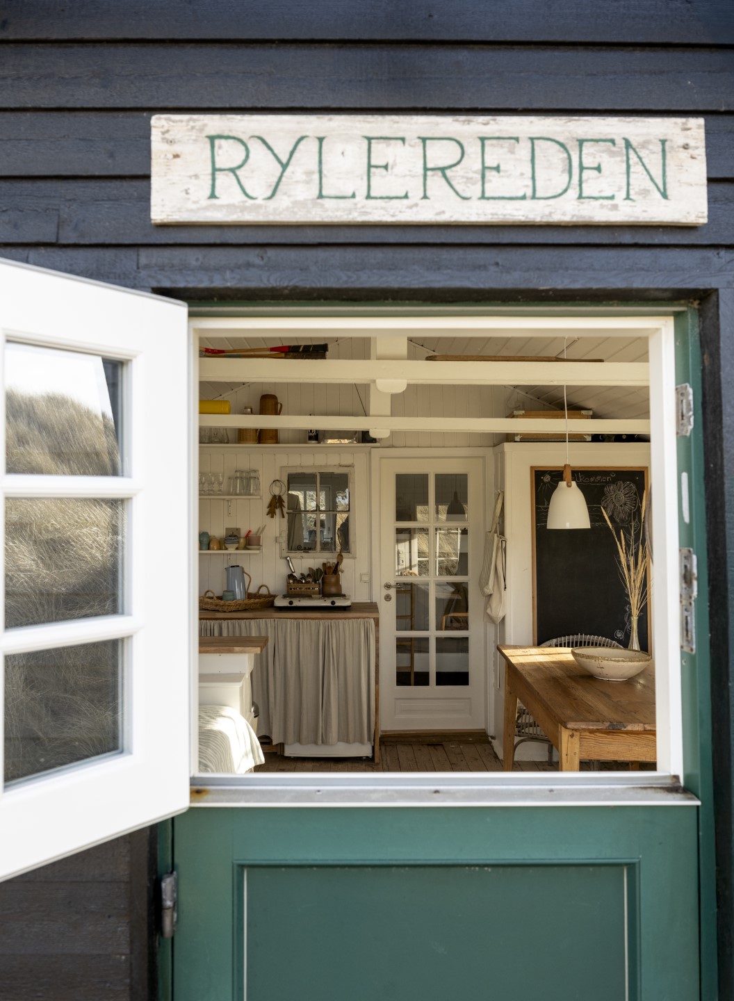 Die Lage des Sommerhäuschens Rylereden ist einzigartig. Nur zu Fuß ist es in etwa einer Minute Spaziergang durch die Dünen vom Parkplatz aus zu erreichen, wo es eingekuschelt auf seine Besucher wartet. „Krähennest“ bedeutet sein Name und zeichnet damit schon sehr treffend das Gefühl von Heimat. Man ist ganz für sich, im Sommer braucht man hier nicht einmal unbedingt ein Auto. Das ist der guten Infrastruktur zu verdanken, die ein nahes familiengeführtes Hotel mit seinem kleinen Kaufladen und mit einem Restaurant mit heimischer Küche bietet. So muss man trotz viel Privatsphäre auf den einen oder anderen kleinen Luxus nicht verzichten – es gibt sogar ein SUP im Haus.