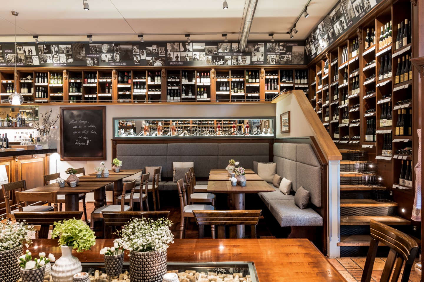 Die rundum verlaufende Weinbibliothek und der beeindruckende Weinkeller ist für jeden Weinfreak eine Freude. Es erwarten Sie eine fachkundige Beratung, wenn man möchte, eine geführte Verkostung und natürlich schmackhafte Jausen, begleitend zu den Weinen.