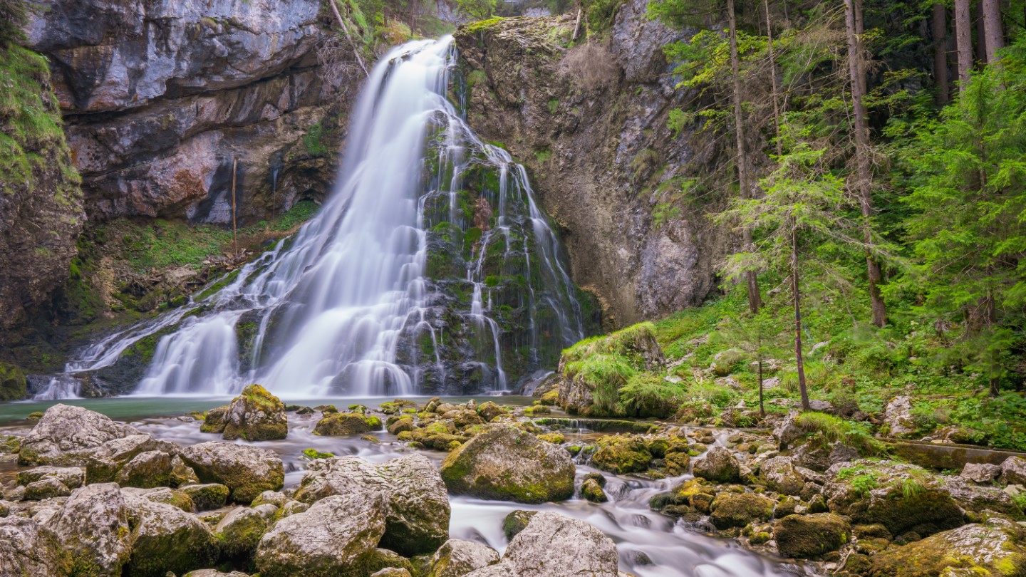 Ein weiterer abwechslungsreicher und spannender Ausflug führt zum Gollinger Wasserfall, an dem das Wasser in zwei Fallstufen 76 Höhenmeter ins Tal überwindet. Über gut präparierte Steigen, aufregende Brücken mit immer wieder sensationellen Ausblicken geht’s etwa eineinhalb Stunden weiter bis zur Quelle der Schwarzbachhöhle. Hunde dürfen an der Leine mitwandern.
