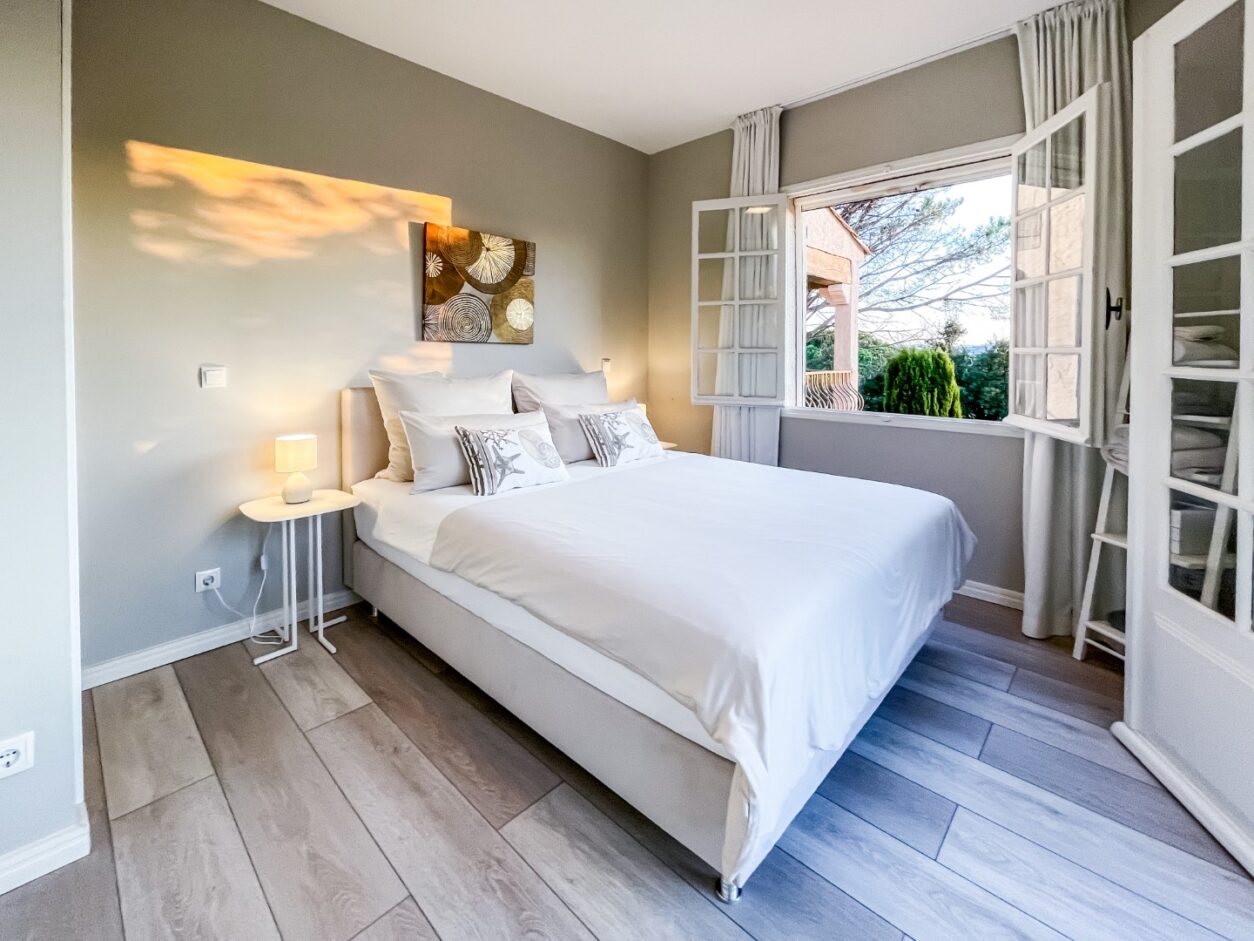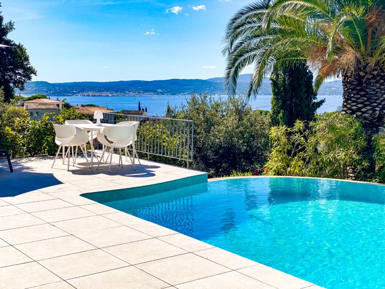 Oberhalb von Sainte-Maxime liegt die Villa Bellevue und schaut über den Golf von Saint-Tropez. Es ist eine exklusive Wohngegend und das Panorama von der weißen Villa über den Pool bis nach Saint-Tropez zwingt praktisch dazu, das Handy zu zücken und Instagram-reife Bilder zu schießen.