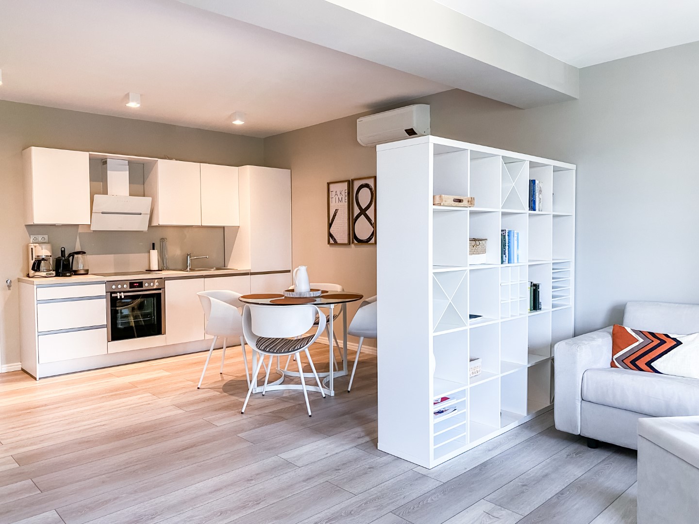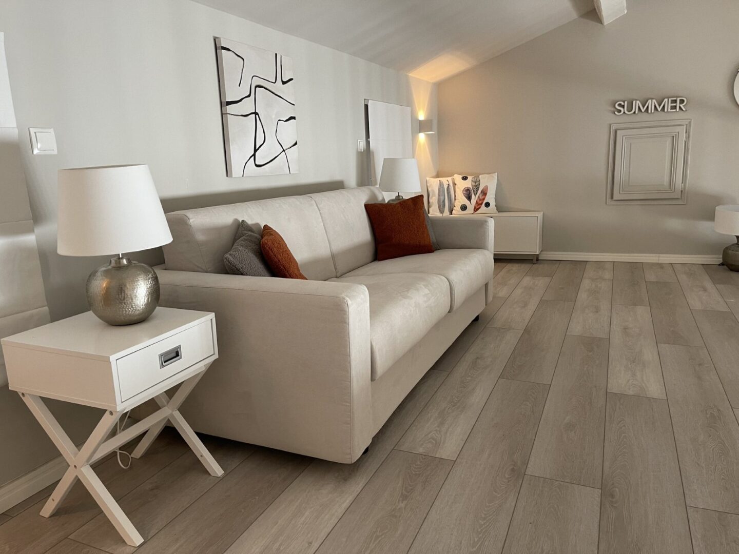 Oder aber, es wird die Strandtasche gepackt, die im Appartement zur Verfügung steht, und der Weg führt ans nur zwei Kilometer entfernte Meer. Dort lässt sich in den hippen Strandlokalen ein leckeres Mittagessen direkt am azurblauen Wasser genießen, danach geht es zum Sonnen und Baden an den Strand.