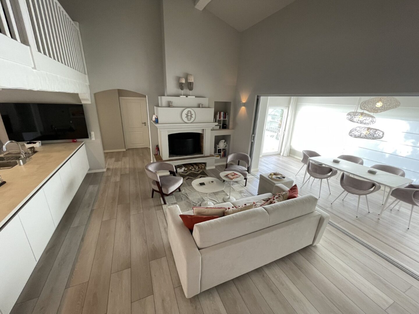 Edel, elegant und maritim ist der Einrichtungsstil. Jedes Möbelstück wurde farblich harmonisch auf das Haus, den Garten und die Umgebung abgestimmt, was ein Gefühl von Ruhe vermittelt. Verschiedene Terrassen ermöglichen es, aus unterschiedlichen Blickwinkeln aufs Meer zu schauen.