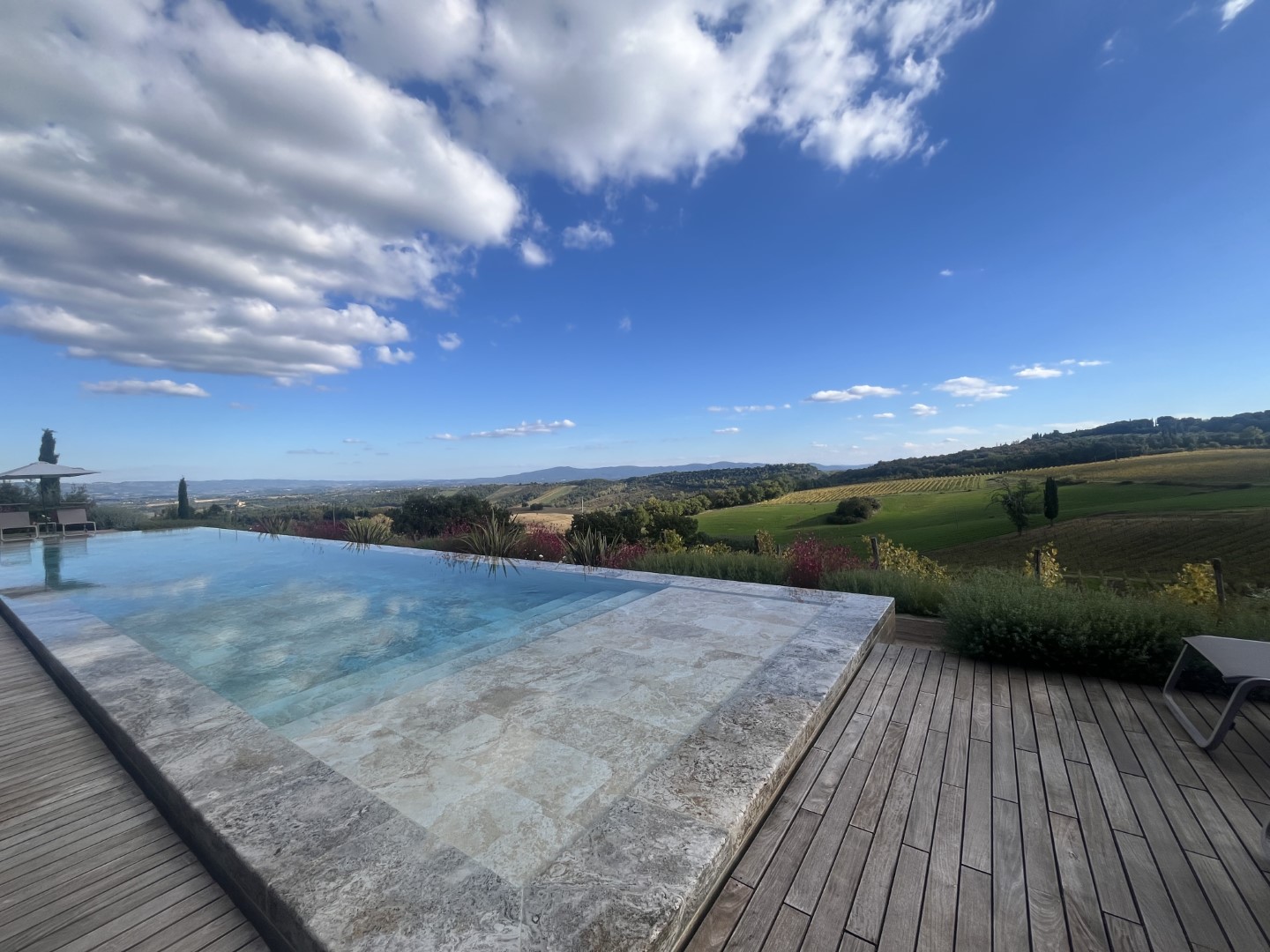 Wenn ich von der Toskana erzähle, darf ich San Gimignano, die berühmte Stadt der Türme, nicht auslassen. Ungefähr 20 Minuten von dort liegt das traumhafte Relais Locanda dei Logi. Nicht nur ist das Relais eine exquisite Adresse, sondern die Eigentümer sind auch weltbekannte Winzer.