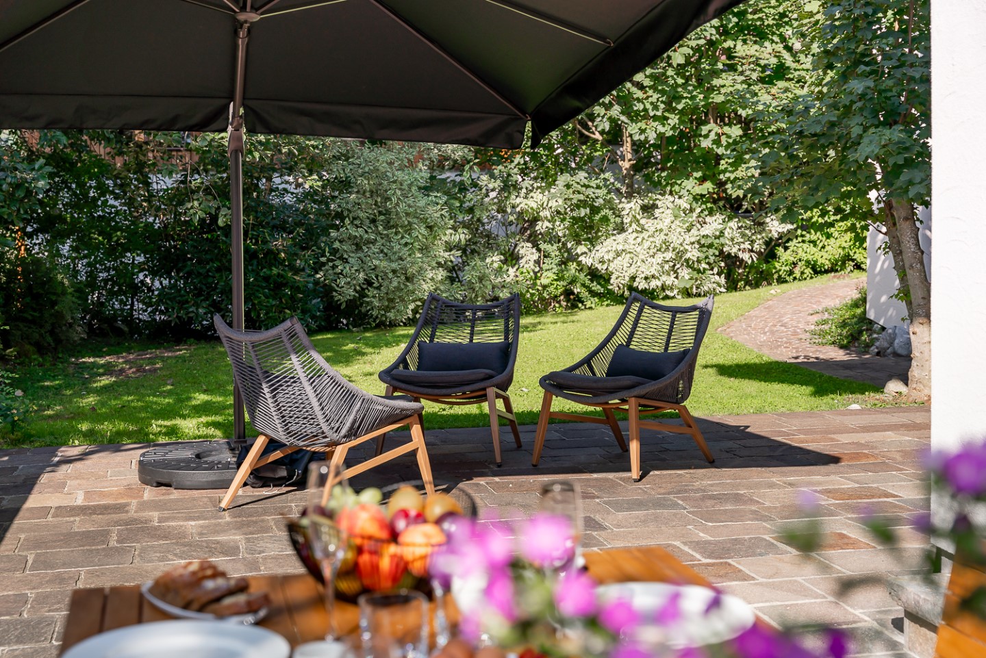 Eine voll ausgestattete, hochwertige Küche mit separatem Essbereich und der weitläufige Garten mit Terrasse, Sitzecke und Grillmöglichkeiten machen das Haus zum idealen Treffpunkt.