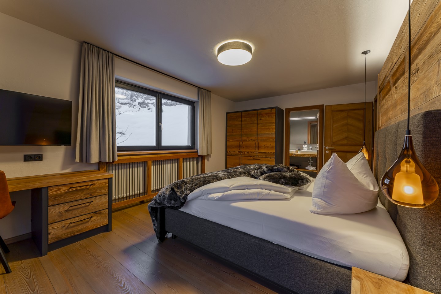 Warme Töne dominieren das Farbkonzept und tragen zur Entspannung bei, der alpin-schicke Einrichtungsstil vermittelt ein Gefühl von Beständigkeit. Man kommt gerne nach einem langen Wandertag oder einem Skitag wieder hierher nach Hause zurück.