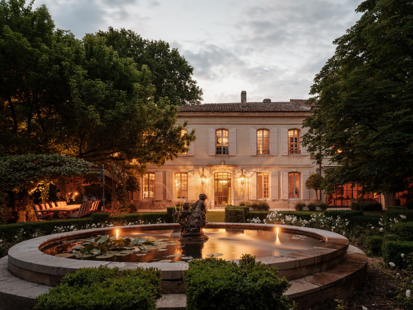 Le Mas de Castillone ist ein 1.000 Quadratmeter großes Anwesen im Herzen von Paradou, eingebettet in 9.000 Quadratmeter Gärten, die von einer majestätischen, jahrhundertealten Platane beschattet werden.