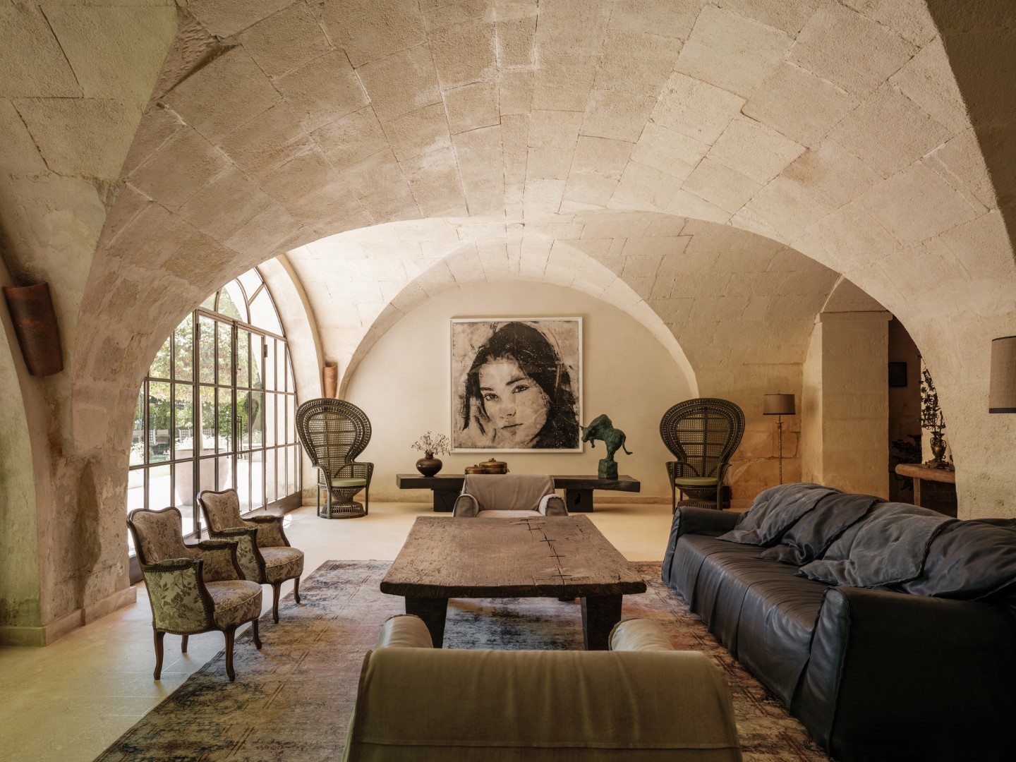 La Bastide de Fléchon gehört zu den kleineren Anwesen von Les Domaines de Chabran, ist jedoch nicht minder beeindruckend. Das Wohnzimmer misst 70 Quadratmeter und seine großen Bogenfenster schauen über einen liebevoll gestalteten Garten von einem Hektar.