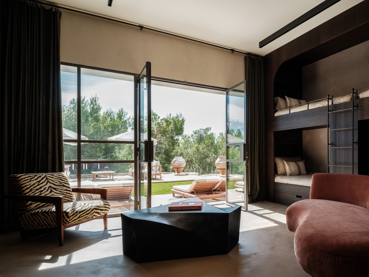 Das 300 Quadratmeter große Haus verfügt über fünf Schlafzimmer, darunter ein Kinderzimmer mit Stockbetten, und verbindet moderne Eleganz mit provenzalischer Authentizität.