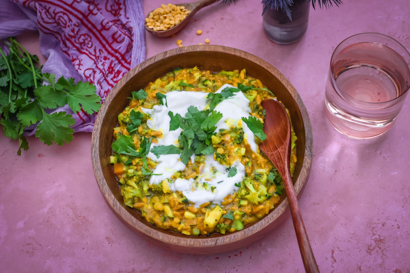 Das liebe ich besonders daran: Jeder kocht sich die Welt, wie sie einem gefällt. Ein Klecks Joghurt obenauf, frischer Koriander darüber, und plötzlich ist da mehr als nur „gesund“. Und dann probiert man und taucht ein in eine warme, weiche, würzige und erstaunlich tröstliche Köstlichkeit. Nichts daran schmeckt nach Verzicht.