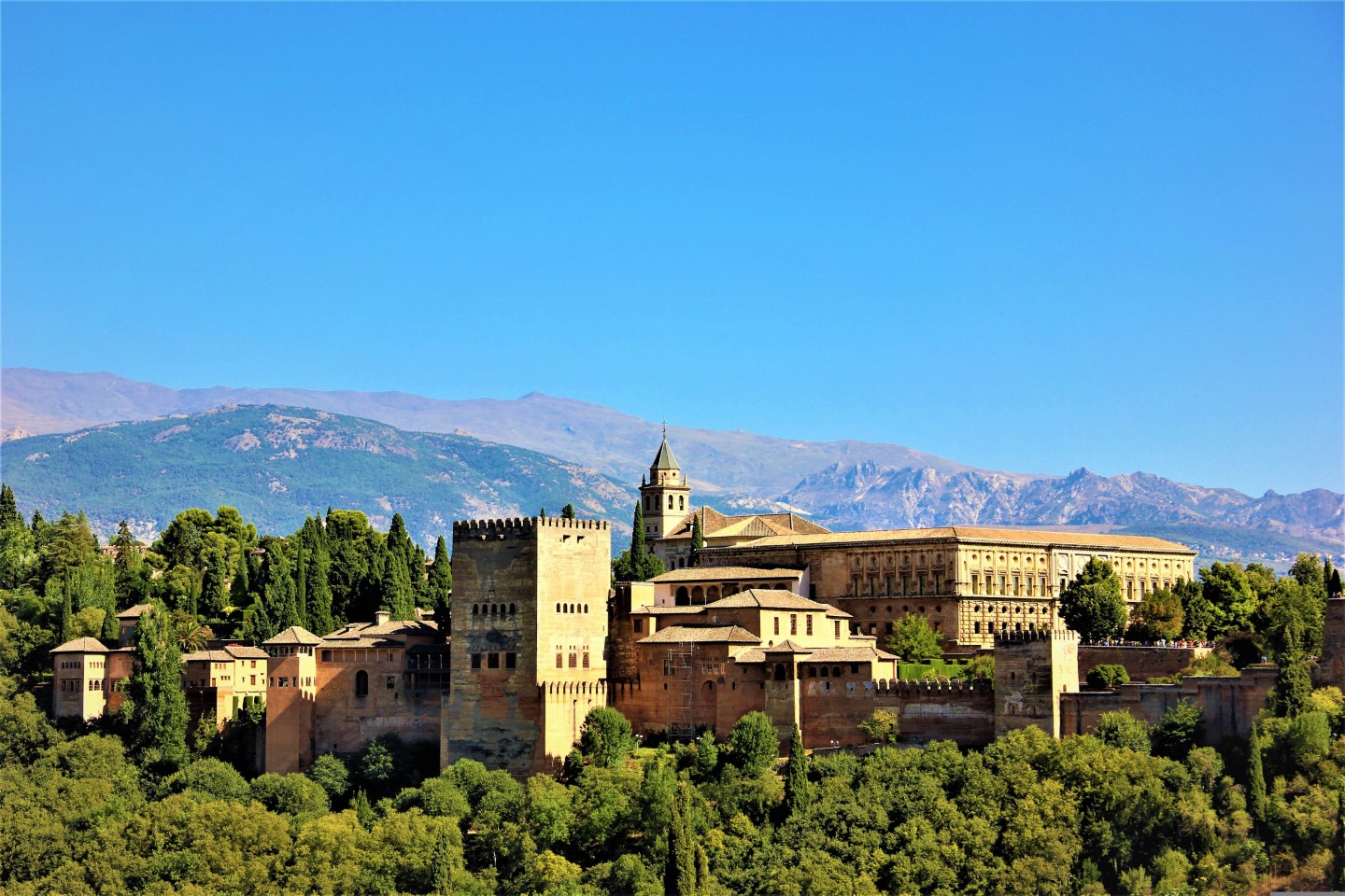 Die verschiedenen Räume, Gärten, Brunnen und Innenhöfe des Palastes nehmen einen mit in die Geschichten von Tausendundeiner Nacht. Und was für eine Aussicht über ganz Granada! Dahinter sind die Ausläufer der Sierra Nevada mit ihren weißen Gipfeln zu erkennen.