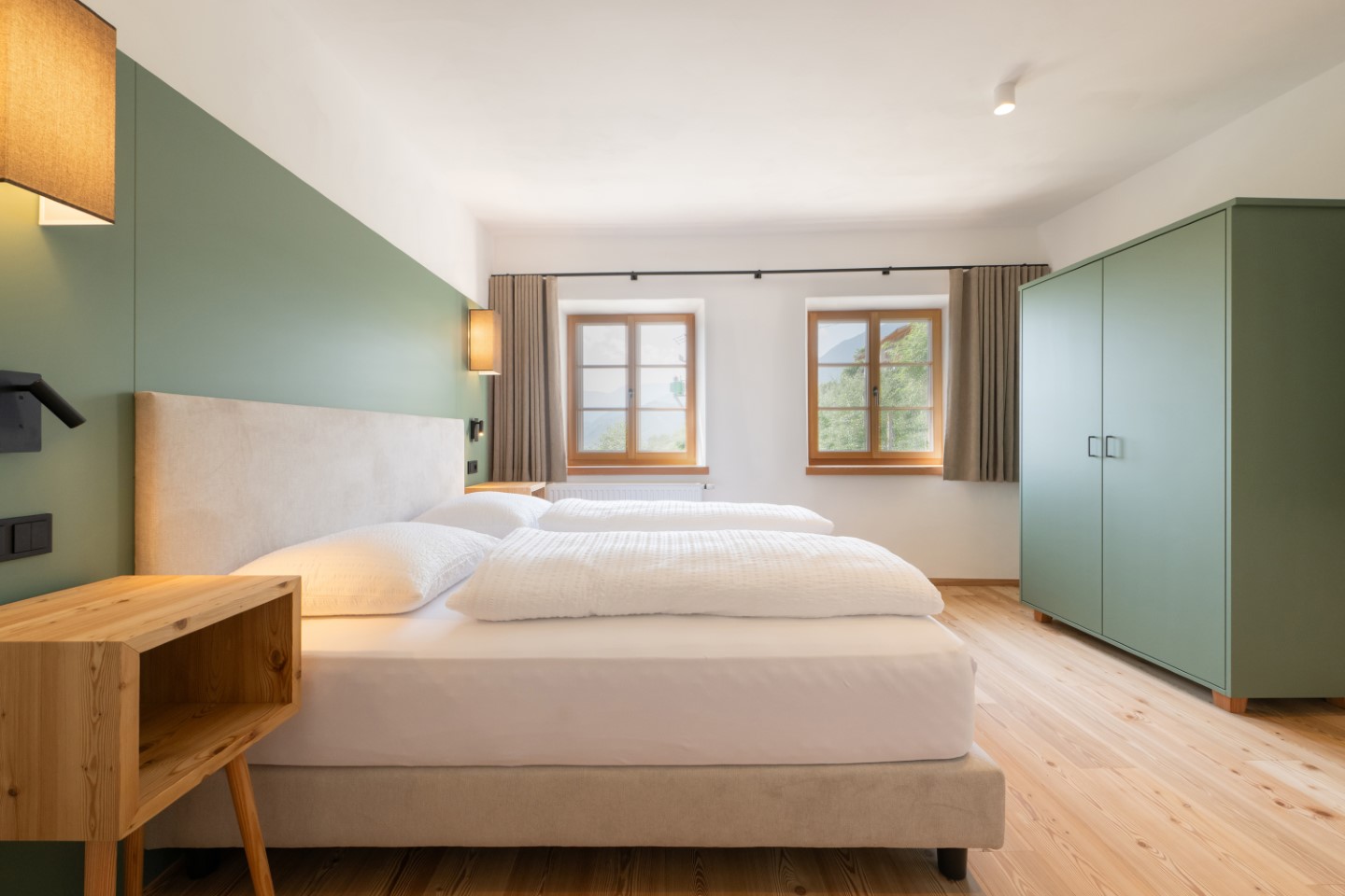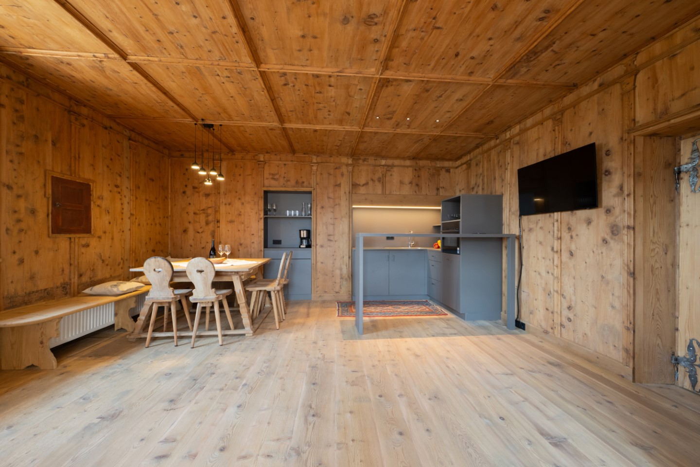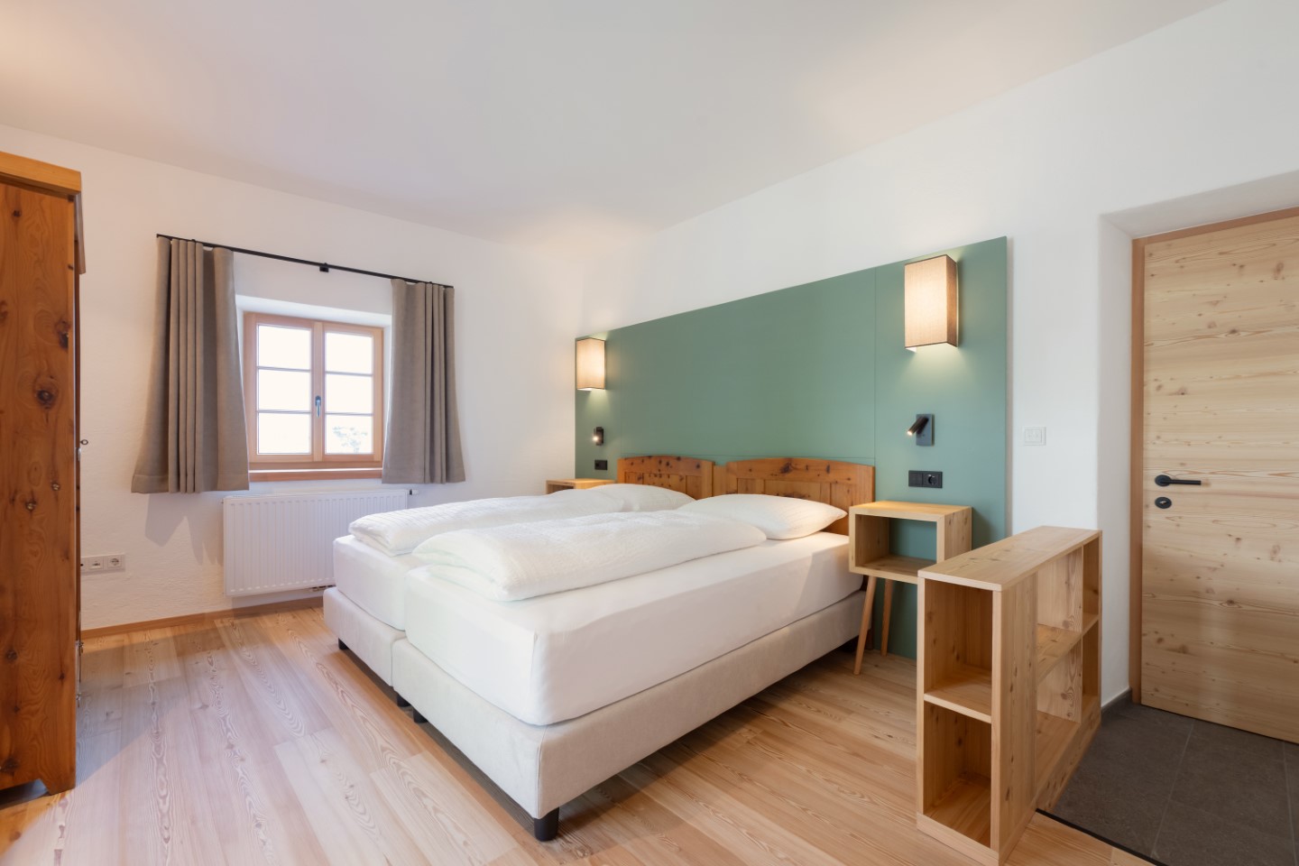 Alles hat eine echte Geschichte, manches eine sehr lange. Wie die 300 Jahre alte Bauernstube im Apartment Johann. Ein Gefühl von Schlichtheit und Wärme verbreiten auch die Echtholzböden und die Farbakzente in gedämpftem Grün.